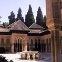 It was not only the palace of the Nasrid kings from the 14th century, but also an almost fortified town. Within the grounds the gardens of the Generalife are a marvelous celebration of beauty and pleasure. From the top of the Albacin-the residential area of old Muslim Granada-the view over the valley to the Alhambra, with the Sierra Nevada behind, is breathtaking.